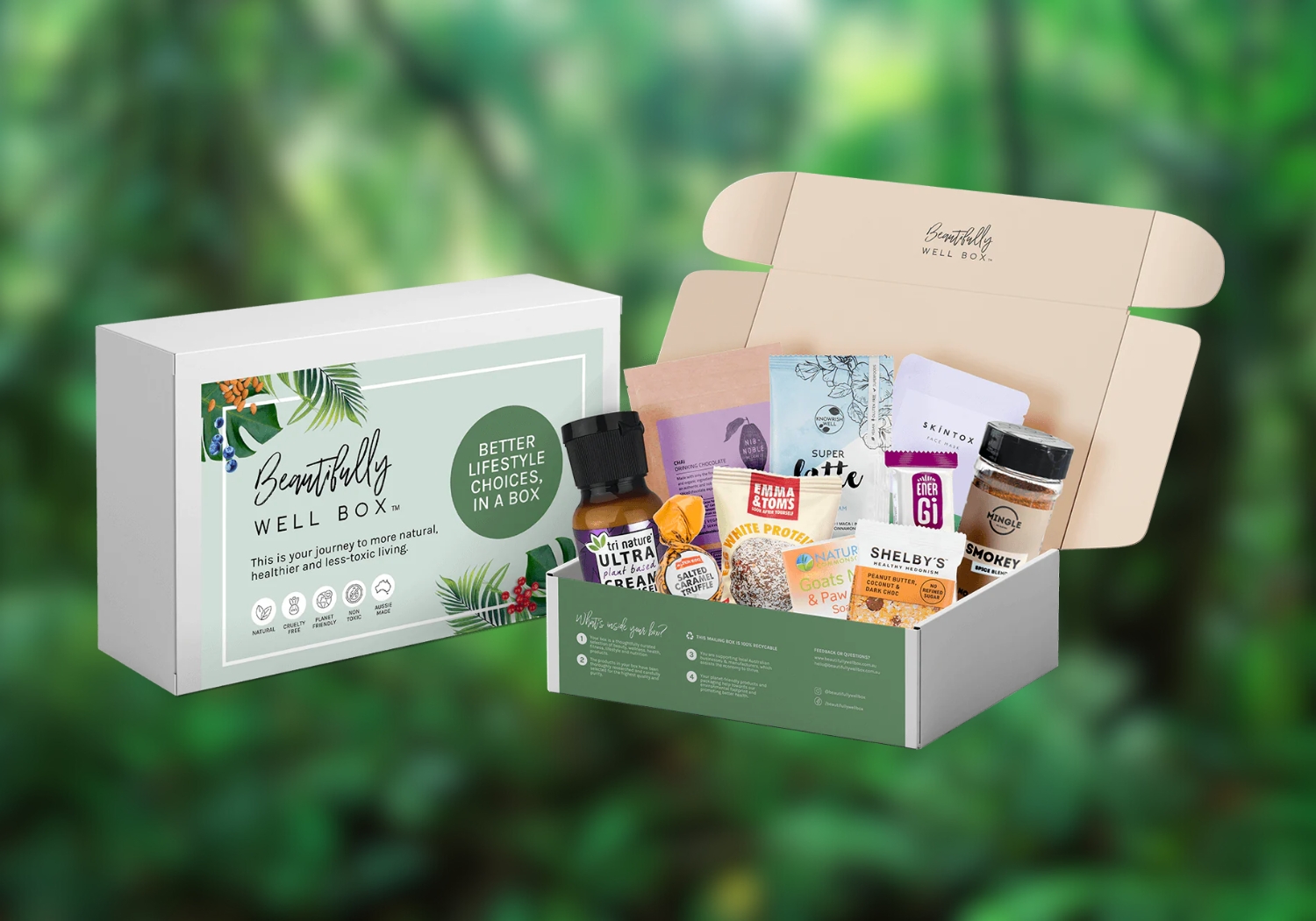This subscription box design summarises the brand's ethos through a blend of calming colours and refined typography. Aligned with their commitment to beauty and wellness, the design integrates into their branding strategy. This distinctive sticker enhances the unboxing experience, leaving a lasting imprint and setting Beautifully Well Box apart in the competitive market.